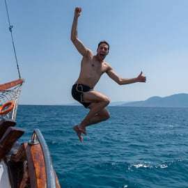 Pendant la croisière, savourez un déjeuner grec fraîchement préparé, servi à bord et accompagné de boissons rafraîchissantes. Détendez-vous en écoutant de la musique et en admirant la vue sur la mer, tout en dégustant des saveurs méditerranéennes authentiques.