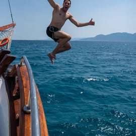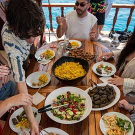 Au cours de notre croisière, nos invités pourront profiter d'un festin traditionnel grec à bord. Savourez un buffet méditerranéen qui met en valeur les ingrédients les plus frais de la région. Complétez votre repas avec des boissons non alcoolisées, de la bière et du vin à volonté, tout en vous relaxant sur le pont et en admirant la vue panoramique.