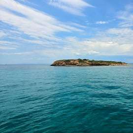 En poursuivant le long de la baie de Voula, votre premier arrêt se fera sur la petite île de Prasonisi, officiellement connue sous le nom d'île d'Hydroussa. Vous pourrez y utiliser l'équipement de snorkeling fourni et explorer les eaux turquoise de ce lieu isolé.