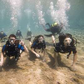 Nous assemblerons le kit SCUBA pour vous, nous enfilerons nos combinaisons et nous nous mettrons à l'eau à une faible profondeur où nous pourrons nous tenir debout. Nous vous expliquerons alors comment accéder aux différentes parties de l'équipement et vous présenterons quelques exercices simples qui vous permettront de vous sentir à l'aise sous l'eau.