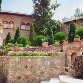 Découvrez également le charme de Kalambaka, la petite ville au pied des Météores. Si vous optez pour l'option avec déjeuner, savourez un délicieux repas grec traditionnel dans un restaurant local : salade fraîche, plat principal au choix (avec des options végétariennes et véganes), pain frais et eau. Si vous préférez, profitez de votre temps libre pour explorer les restaurants, cafés et boutiques de Kalambaka, ou simplement vous détendre au pied de ces formations rocheuses majestueuses.