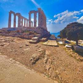 Profitez d'une visite privée d'une demi-journée d'Athènes au Cap Sounio. Admirez un magnifique coucher de soleil au cap Sounio, explorez l'ancien temple de Poséidon et profitez des paysages côtiers pittoresques le long de la Riviera athénienne.