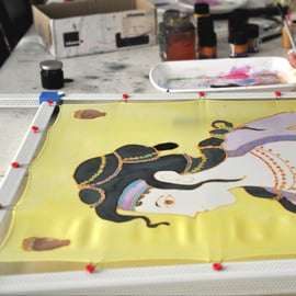 Pour ceux qui ont déjà une expérience de la peinture, je vous guiderai dans la création de votre foulard sur le thème de votre choix. Vous pouvez vous inspirer de la mythologie grecque, de la religion, de la nature, etc. pour transformer votre vision artistique en un chef-d'œuvre portable.