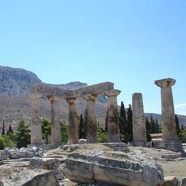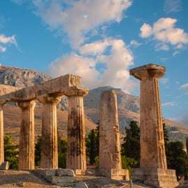 Dans l'Antiquité, Corinthe était l'une des villes les plus riches, comme en témoignent ses vestiges, notamment l'immense Agora (place du marché) et le temple d'Apollon datant du VIe siècle avant J.-C., où saint Paul a vécu et prêché pendant deux ans. Nous ferons également une brève halte sur le site de l'ancien port de Kechreai où St Paul a débarqué.
