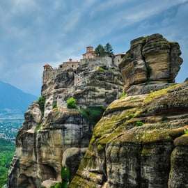 Les gigantesques rochers des Météores sont perchés au-dessus de la ville de Kalambaka, à une hauteur maximale de 400 mètres. Les sommets les plus intéressants sont ornés de monastères historiques, inscrits sur la liste du patrimoine mondial de l'Unesco